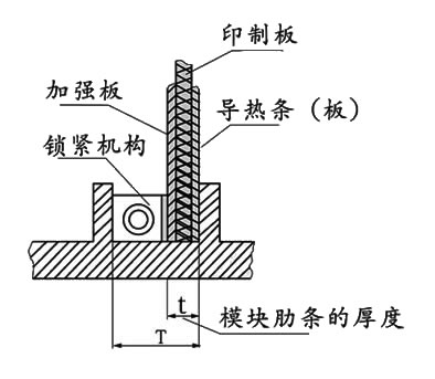 槽的寬度T應(yīng)滿足T=t+X(±0.1)的要求,且槽表面光潔度要求不高于3.2.其中t為印制板+導(dǎo)熱條+加強(qiáng)版的總厚度、或模塊肋條的厚度。