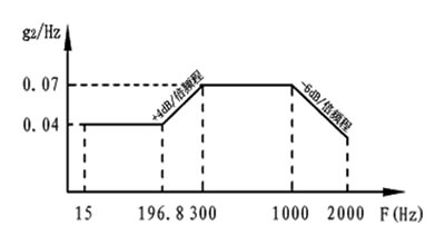 (2)XSI-190B2型楔形鎖緊機(jī)構(gòu)楔形鎖緊機(jī)構(gòu)(XSI-190B2)成對(duì)使用于負(fù)載為1.5Kg的模塊,當(dāng)楔形鎖緊機(jī)構(gòu)前端M3螺釘擰緊力矩為0.9N.m時(shí),能承受圖2的振動(dòng)量級(jí),三個(gè)方向各6小時(shí),試驗(yàn)后應(yīng)無(wú)外觀損傷和結(jié)構(gòu)松動(dòng)。